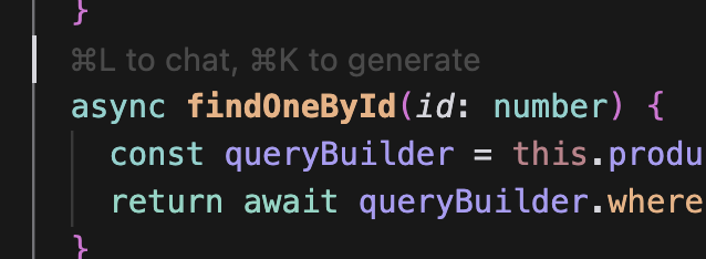 에디터에서 약 1초만 가만히 있으면 Cursor Copilot++이 코드를 자동으로 예측하여 완성해줍니다. 주변 코드의 패턴을 분석해서 자연스러운 코드를 제안해주는 것이 특징입니다.